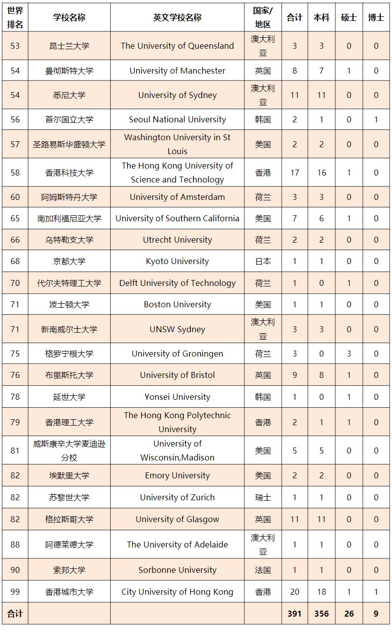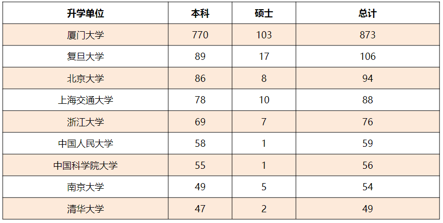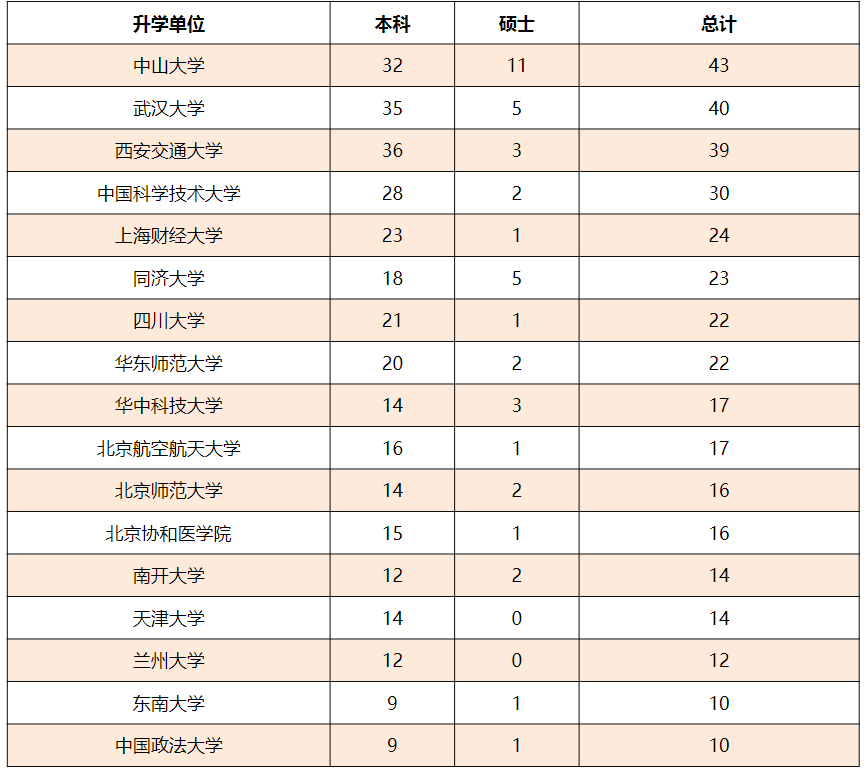 继续深造情况:2022届毕业生境内升学共有2140人,其中本科境内升学1902人(含二学位8人)。本科毕业生升硕士研究生1894人,占本科毕业生总数的40.6%。(其中推免生1147人,考取硕士研究生747人)升学人数较多的院校详见下表。