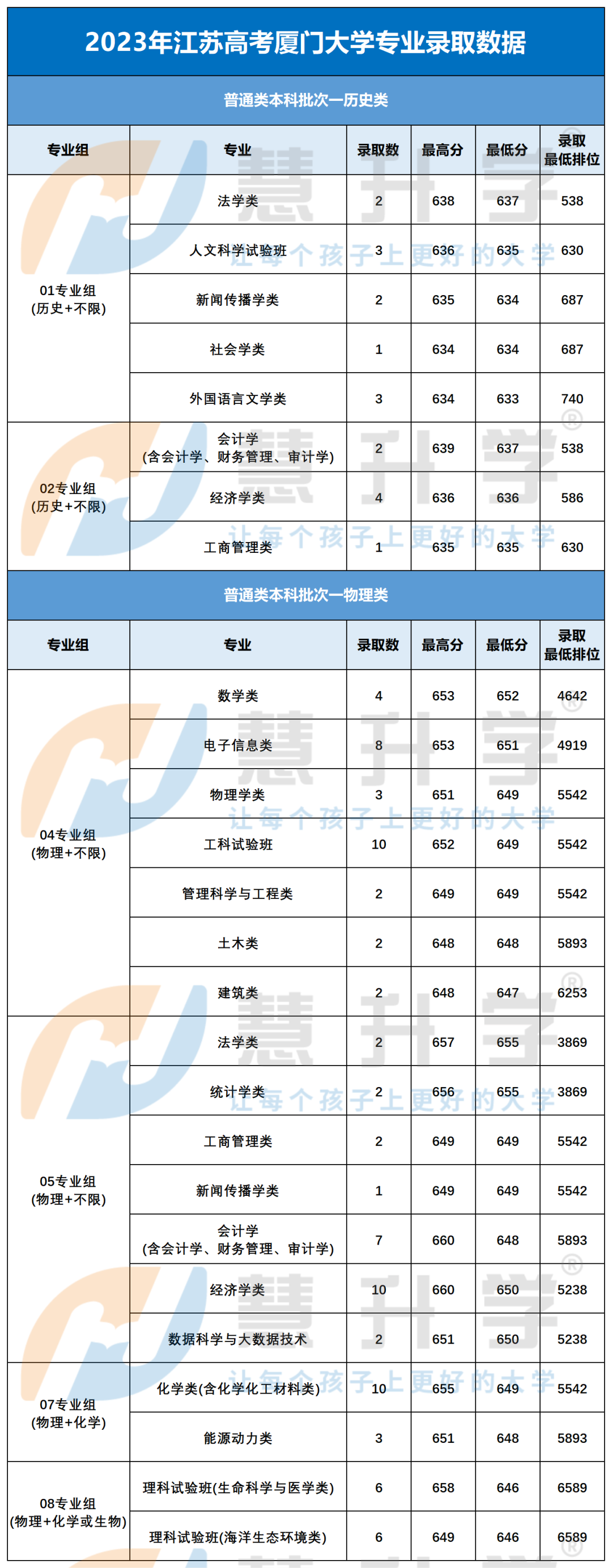 近日,不少院校已经公布了2023年在江苏各专业的投档分数线,厦门大学2023年普通批次各专业招生录取信息目前也已经公布。