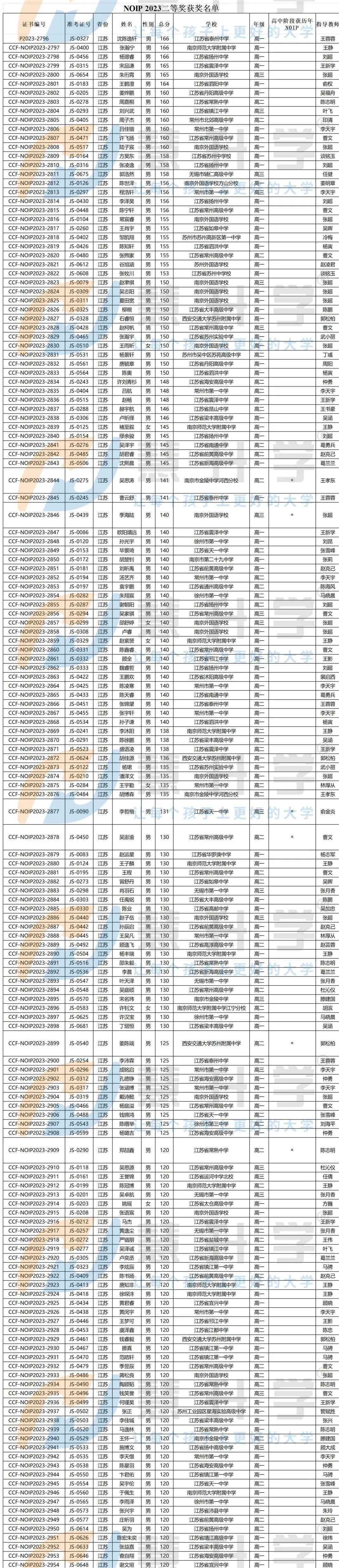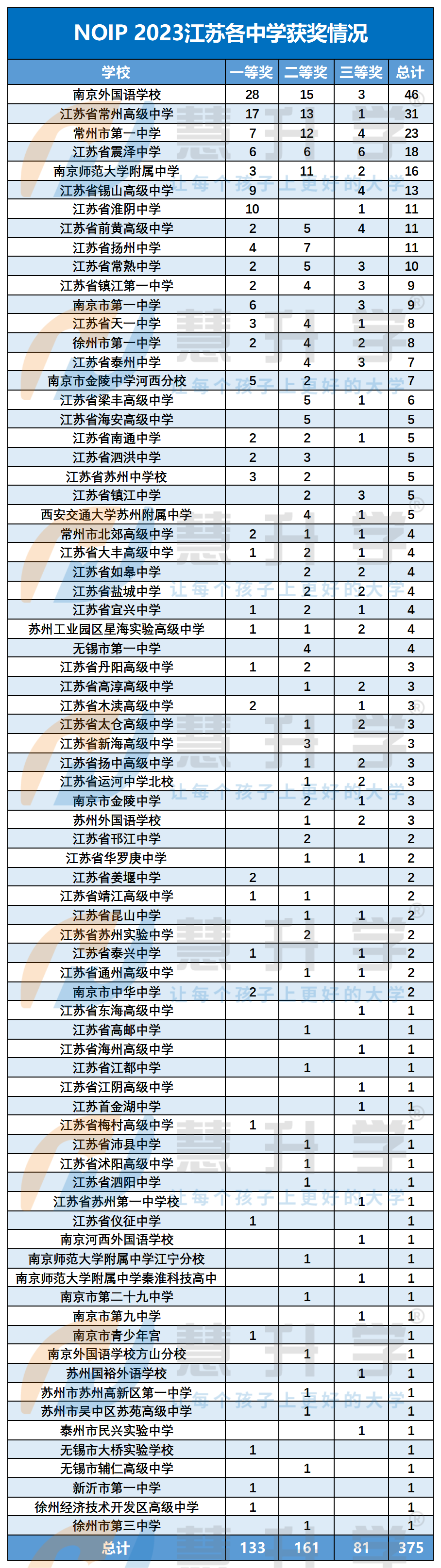 近日,NOIP 2023获奖名单公布,江苏共375人获奖,其中一等奖133人,二等奖161人,三等奖81人。