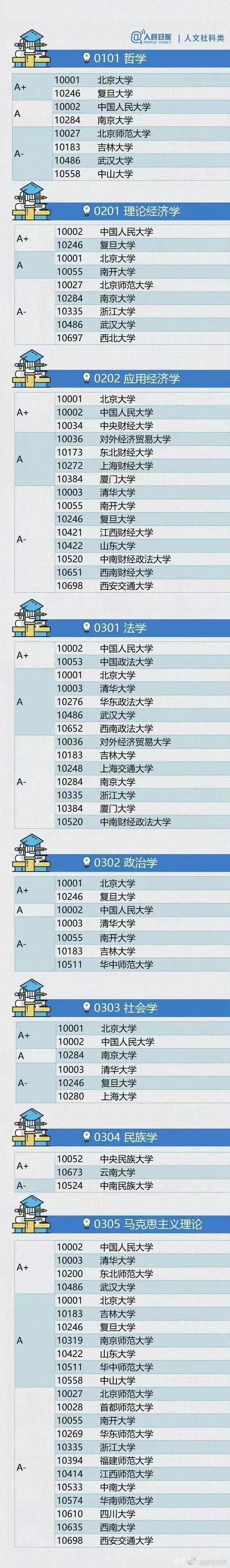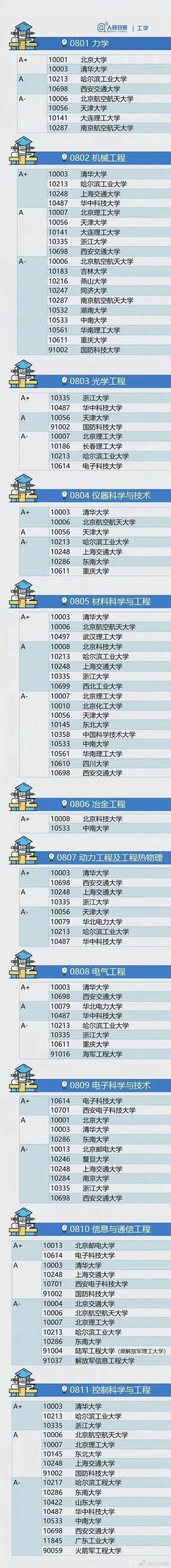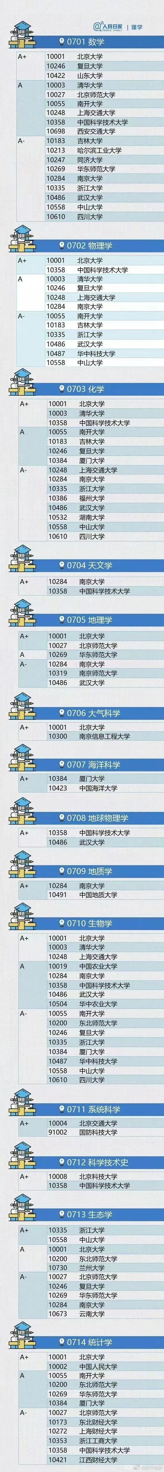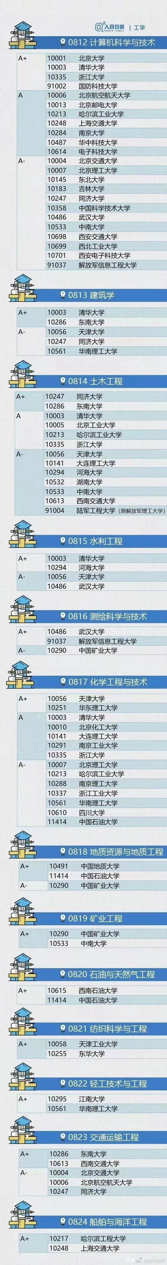 下面整理汇总了人民日报关于A类学科(包括A+、A、A-三档)的高校学科评估结果,