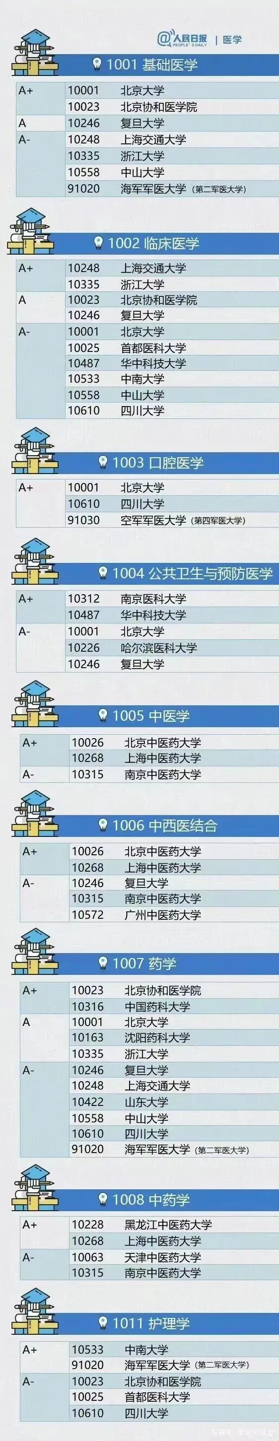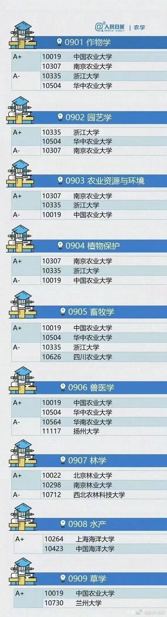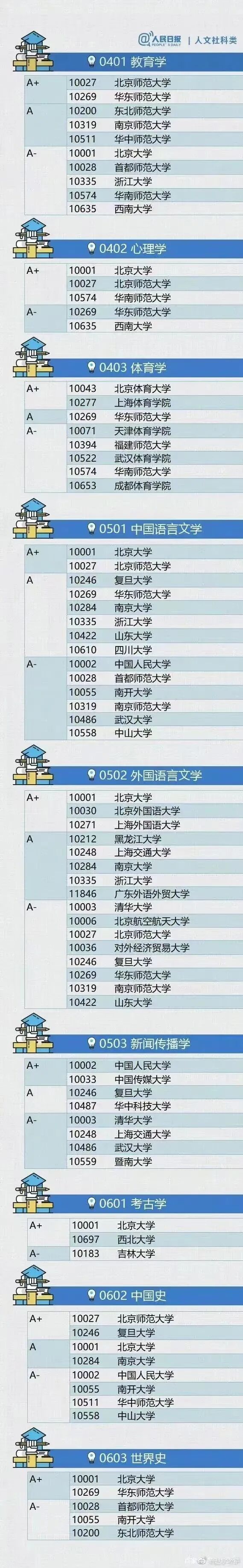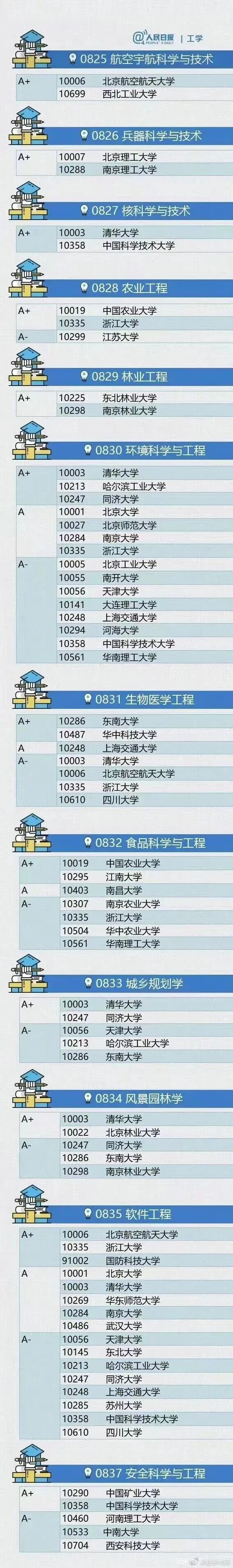 下面整理汇总了人民日报关于A类学科(包括A+、A、A-三档)的高校学科评估结果,
