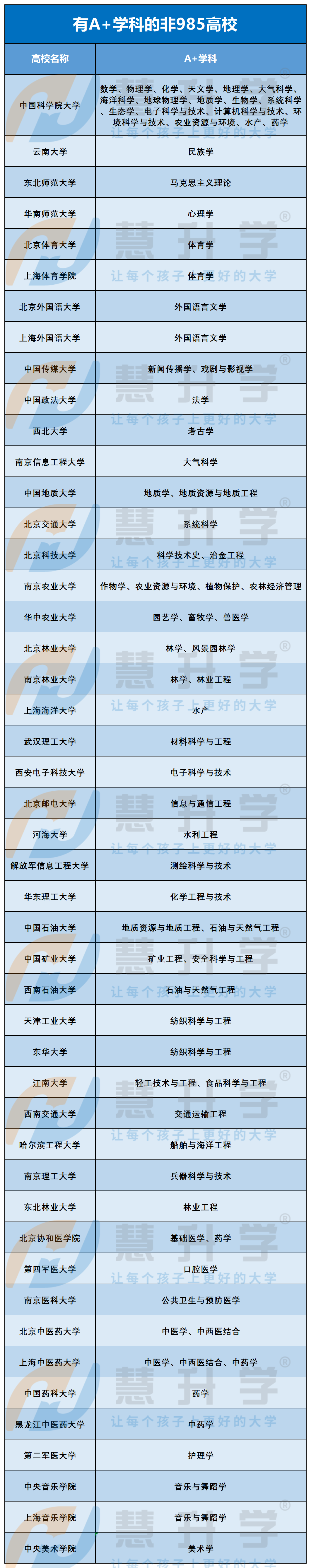 由于第五轮学科评估结果官方完整版未对外公布,慧老师以第四轮科学评估结果,给大家整理出不是985大学却拥有A+学科的47所高校,考生家长在择校择专业时重点参考!