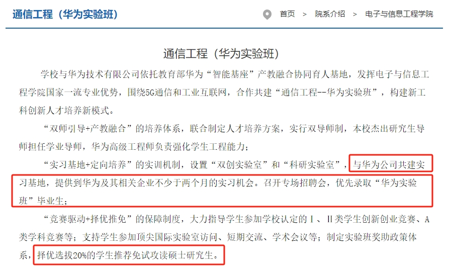 上文也提到这个和华为合作的专业除了拥有就业优势以外,还会择优选拔20%的学生推荐免试攻读硕士研究生。