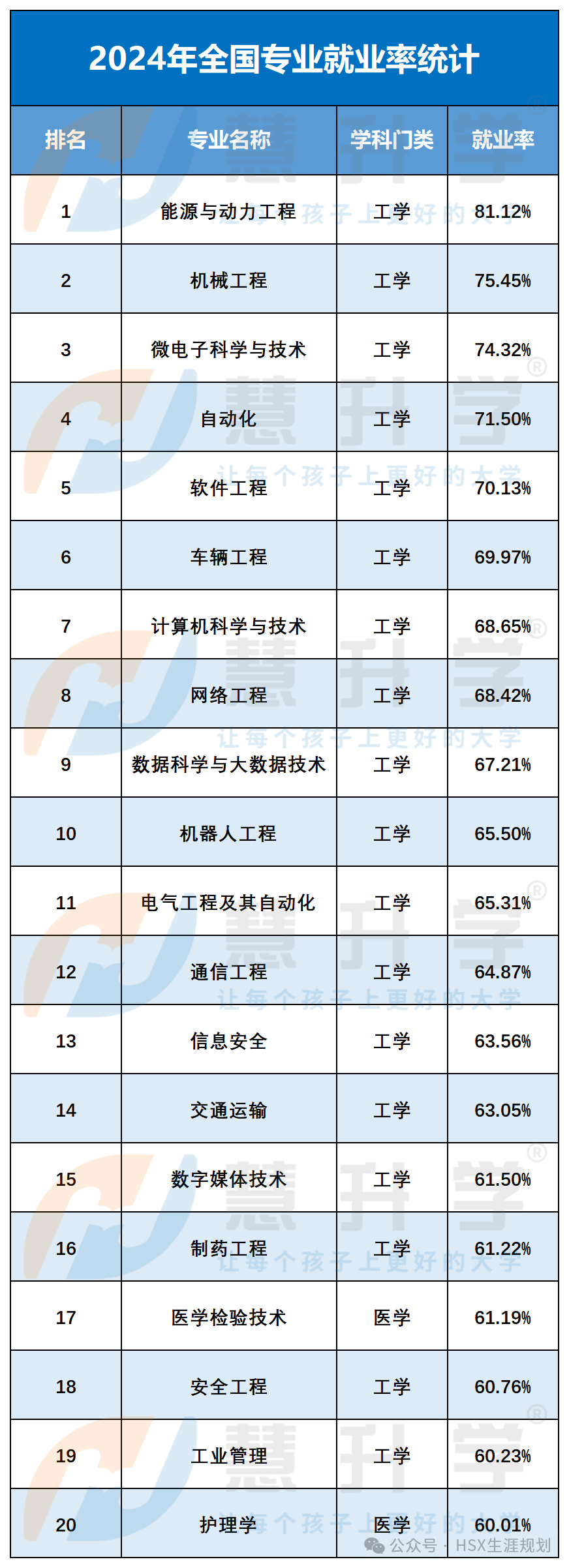 并且就业率较高的专业,如能源与动力工程、机械工程、微电子科学与工程等,往往与实际生产和技术应用紧密相关。