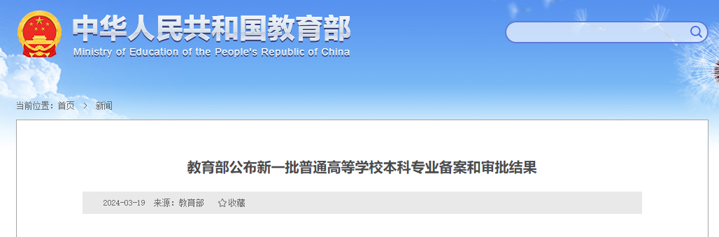 教育部发布《关于公布2023年度普通高等学校本科专业备案和审批结果的通知》,同时对普通高等学校本科专业目录进行了更新,列入普通高等学校本科专业目录的新专业共有24个。