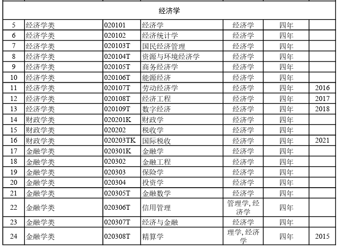 经济学门类下有经济学、财政学、金融学、经济与贸易等。