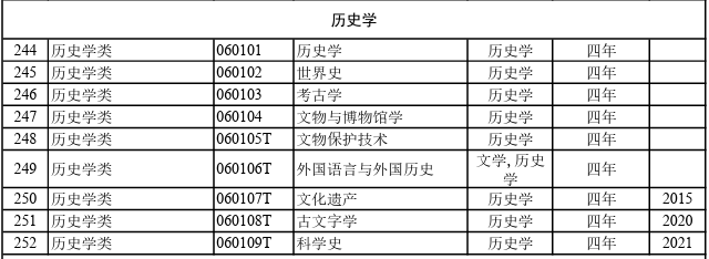 历史学类下设历史学、世界史、考古学、文物与博物馆学、文物保护技术、外国语言与外国历史等。