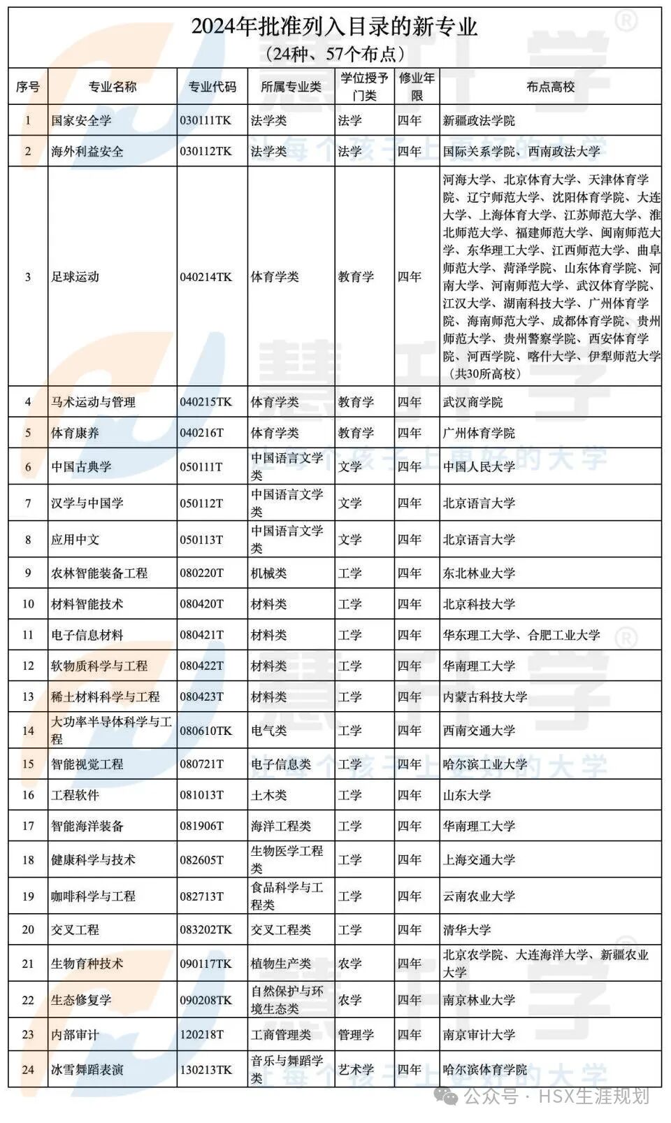 关注【HSX生涯规划】回复【专业】,获取2024新增专业完整名单。