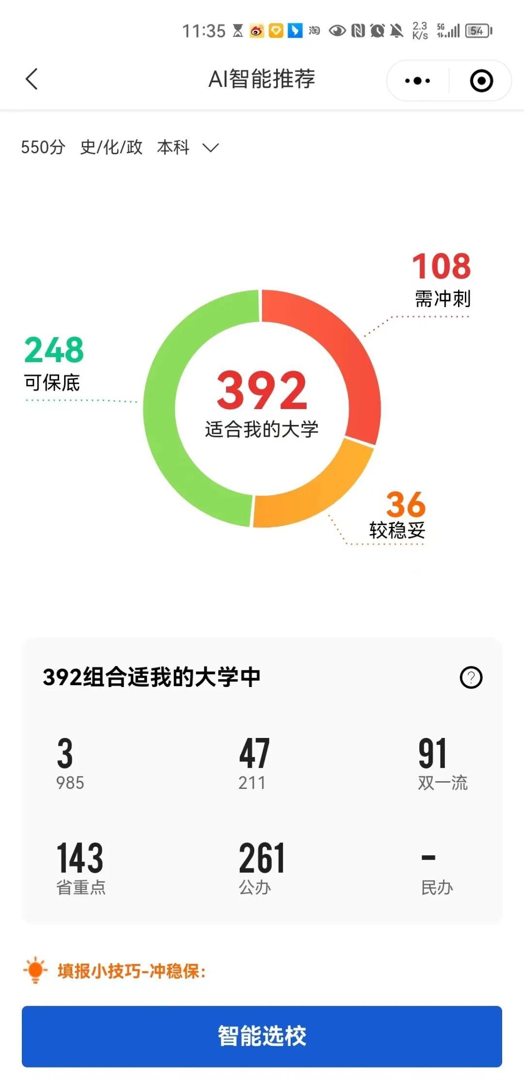 第二步、根据分数智能推荐适合您的大学