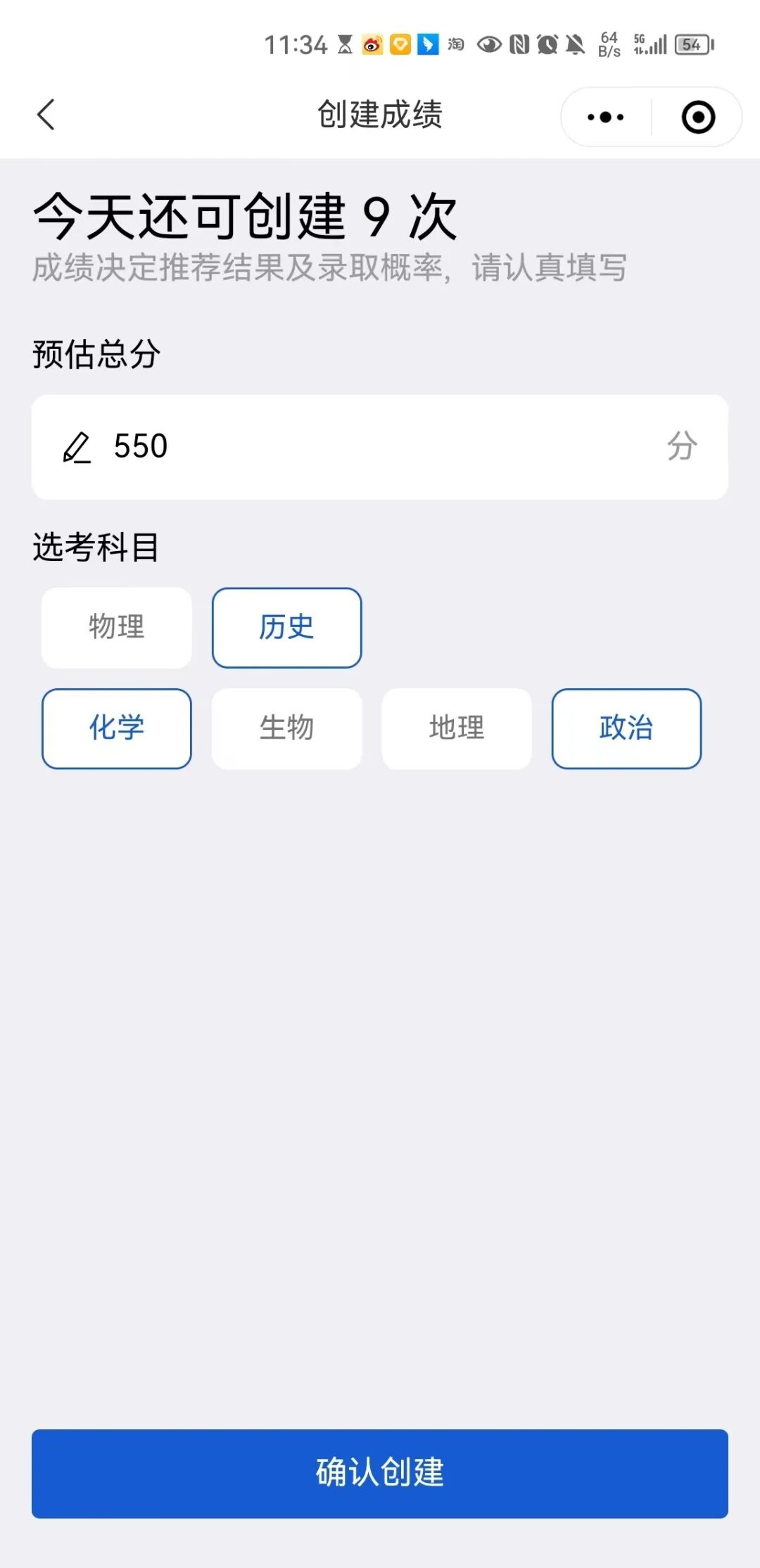 第一步、输入成绩、选科