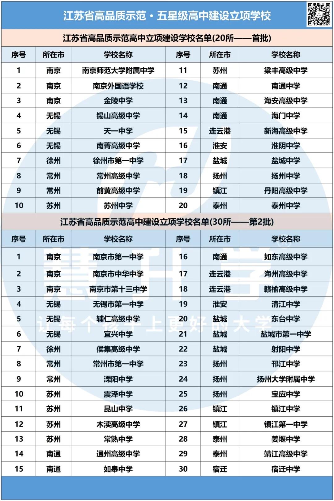 其中“高品质示范高中立项建设学校”是五星级示范高中,只有校园硬件、师资软件、育人成果样样拔尖的学校才能摘星。手握这张“入场券”,就等于跻身江苏基础教育“天花板”,全省仅20所左右。